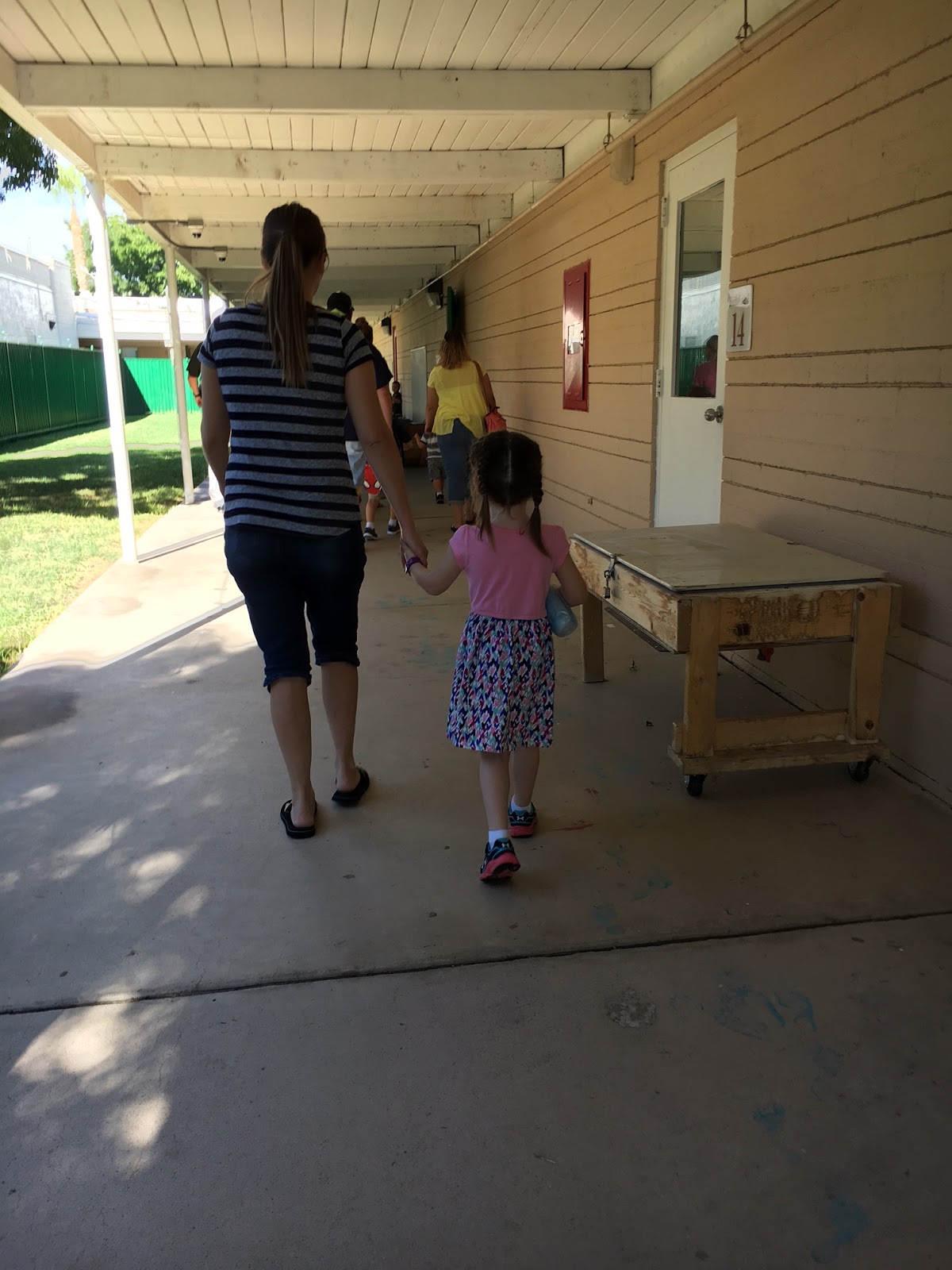 She was pretty happy when I picked her up, but she said that she was sad and nervous during class (Actually at first she said she felt guilty! It's hard to identify those negative emotions sometimes.). I asked her if she cried when I dropped her off and she said, "Well, I had some water fill up my eyes, and I made some squeaky noises by my cubby by the door. Then I stopped making squeaky noises, but there was still water on my cheek right here [pointing]. But then it was okay." The rest of today was a bit emotional and I can tell it's going to take some time to adjust.